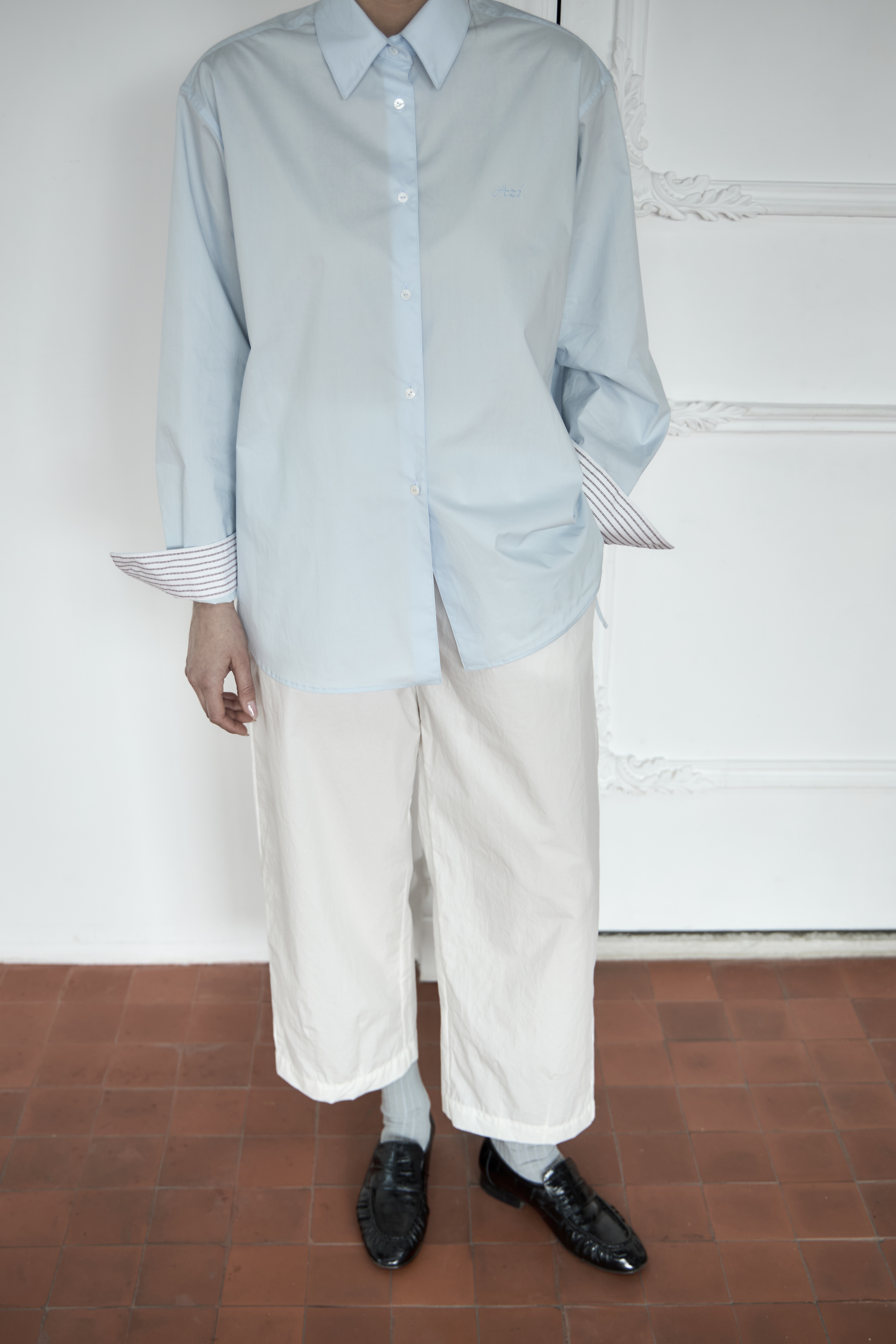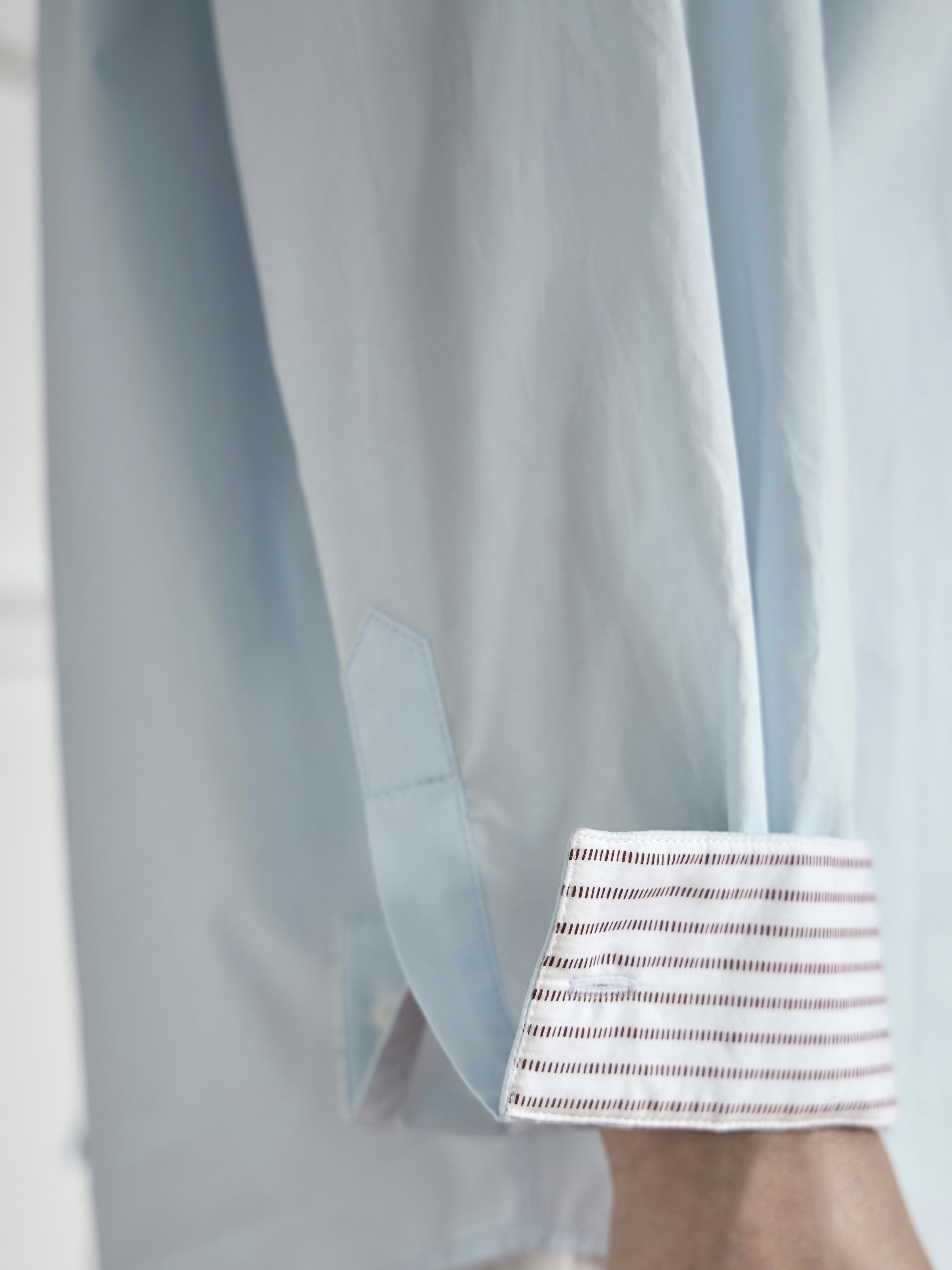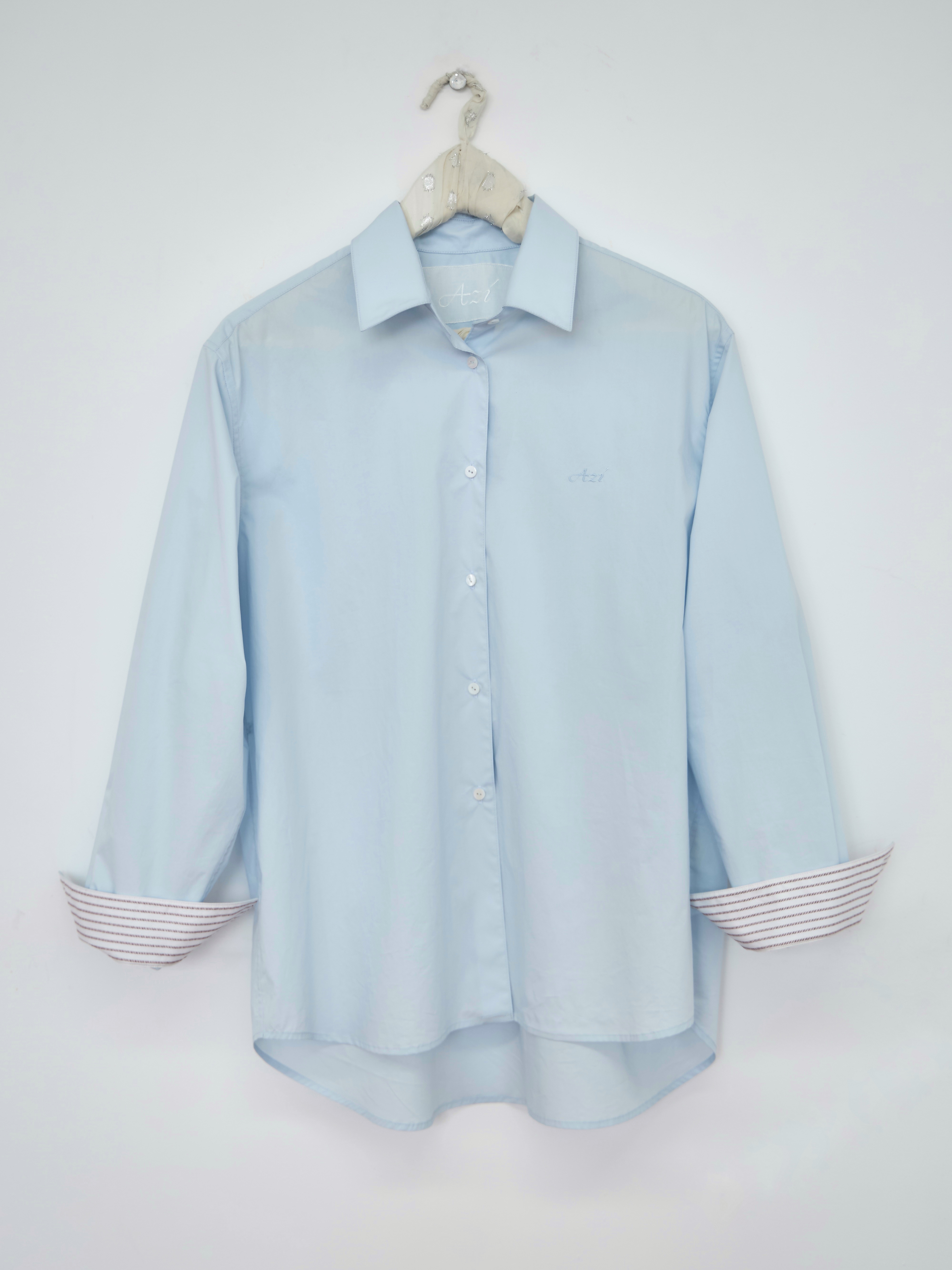 В этом сезоне рубашка Selin возвращается в новом небесно-голубом оттенке, напоминающем чистоту утреннего неба. Сшитая из мягкого хлопка, она нежно ощущается на теле. Особый характер этой модели придают лаконичные полосатые манжеты и деликатная вышивка «Azi» на груди — едва заметные детали, подчеркивающие аутентичность изделия.