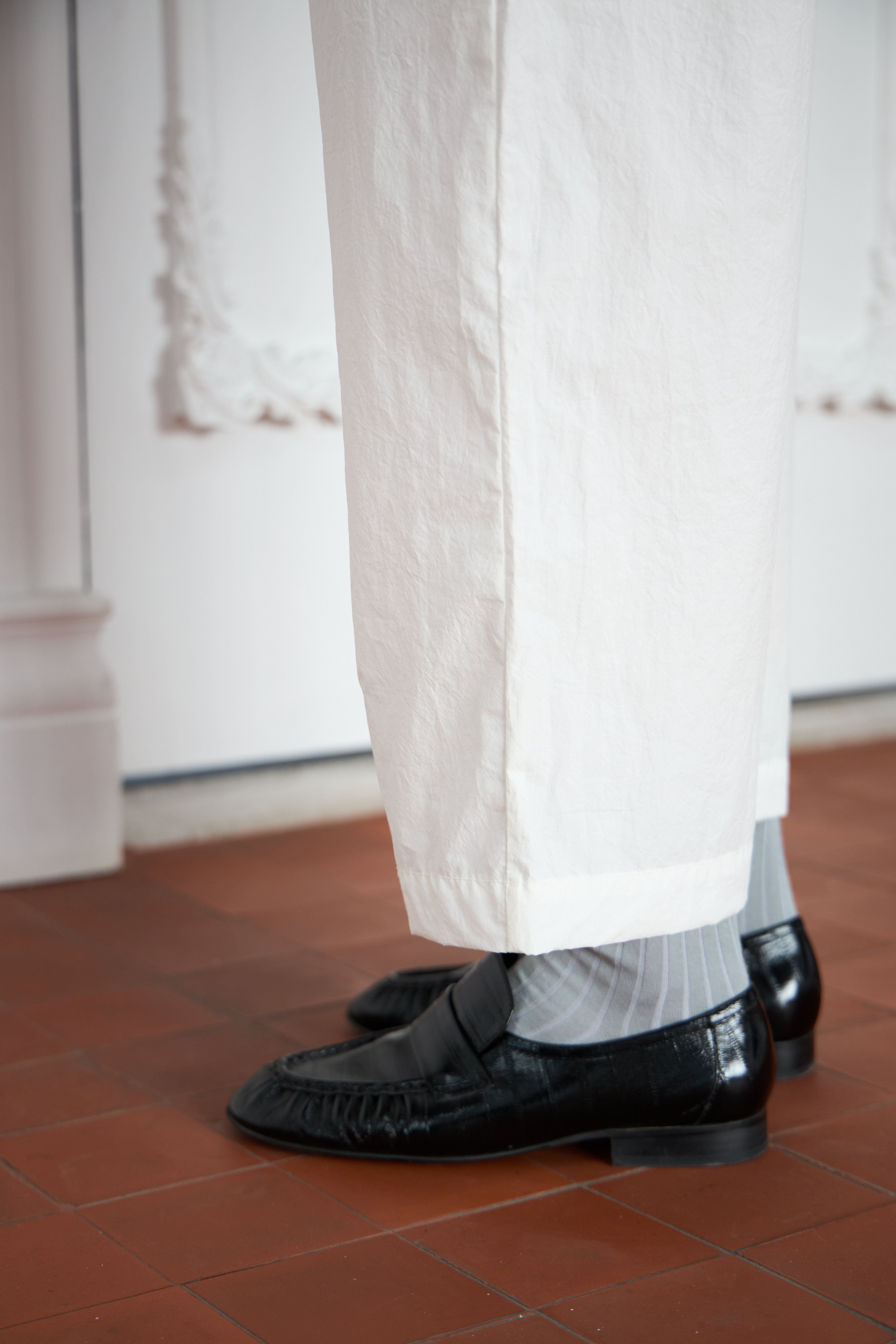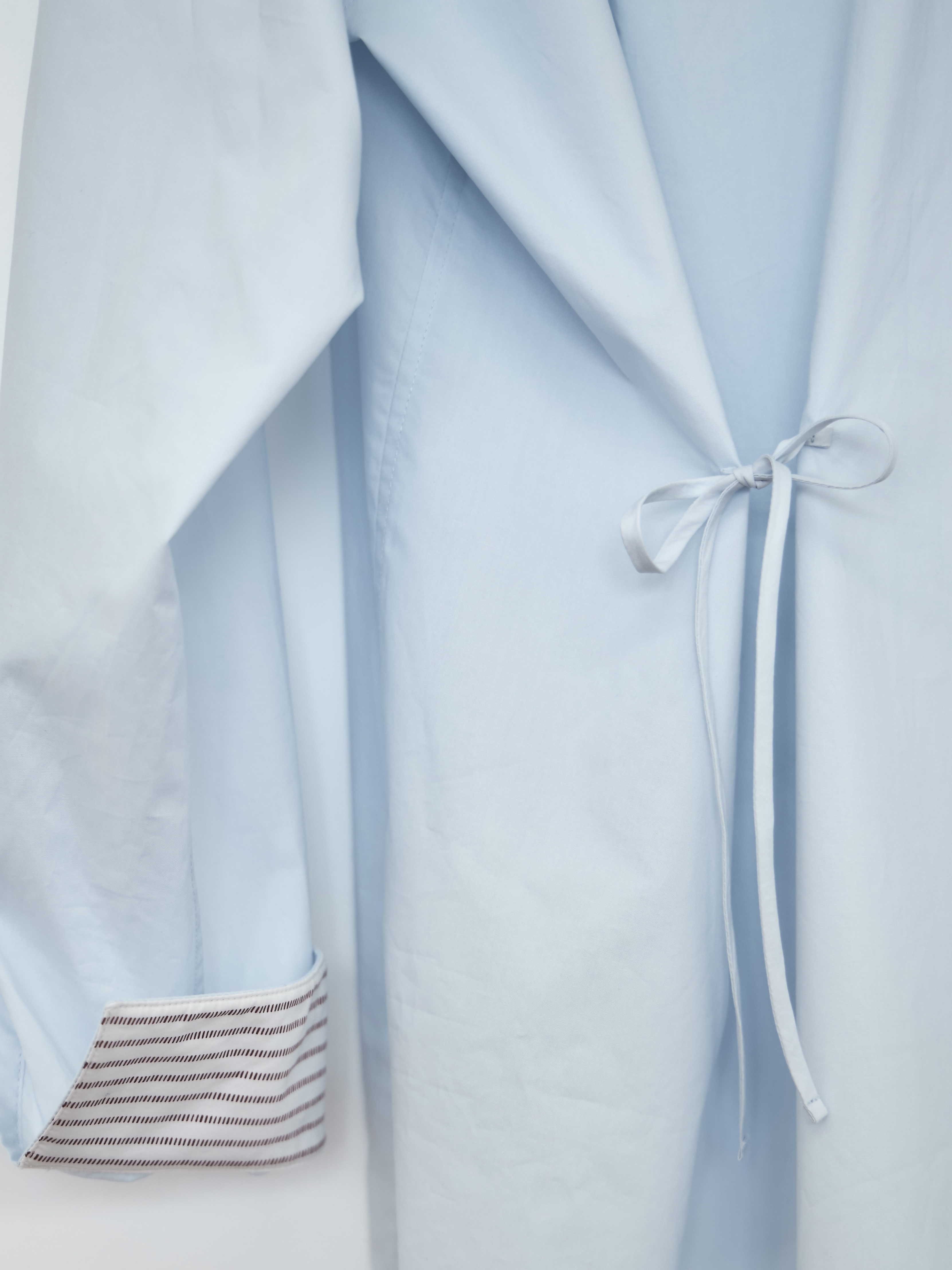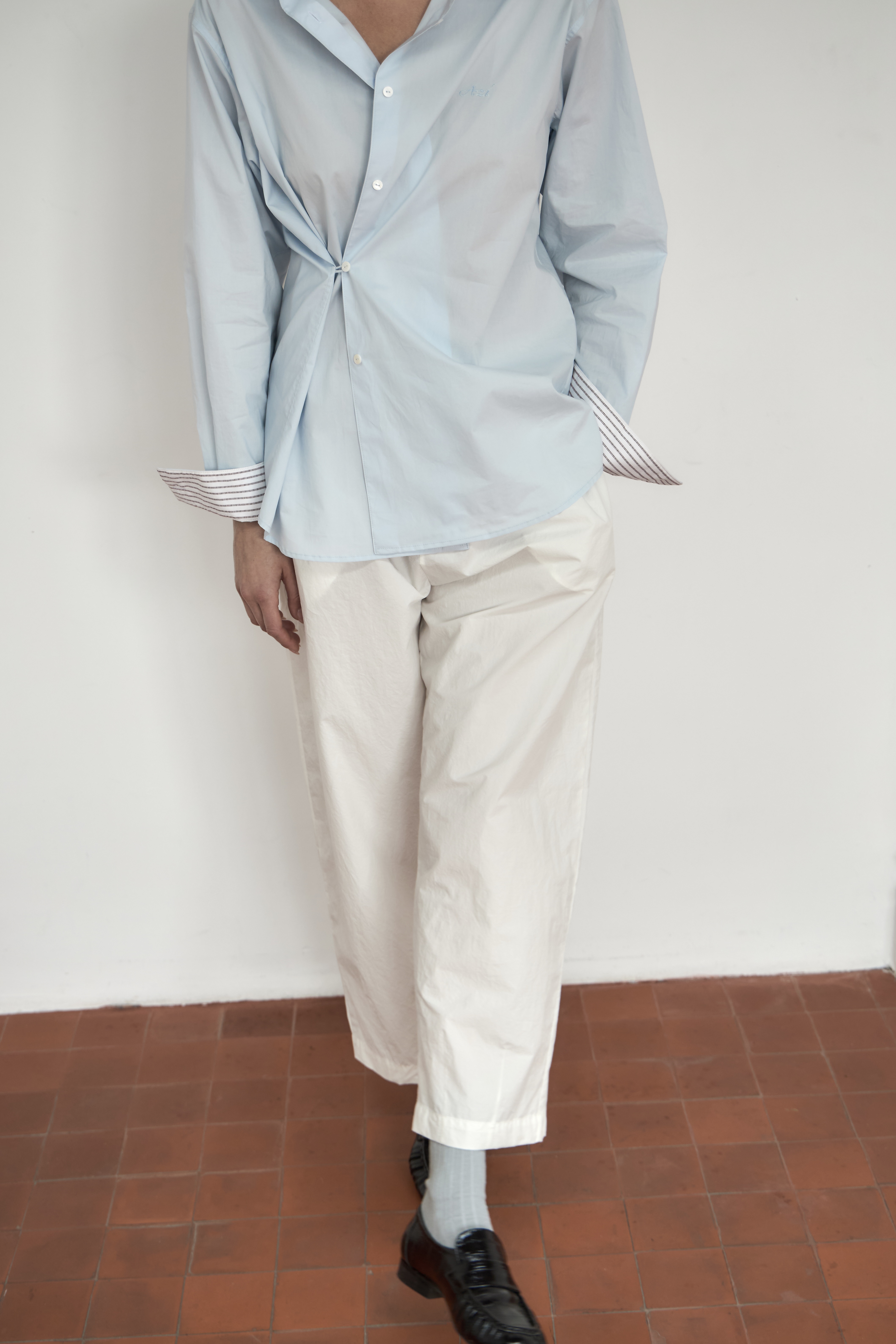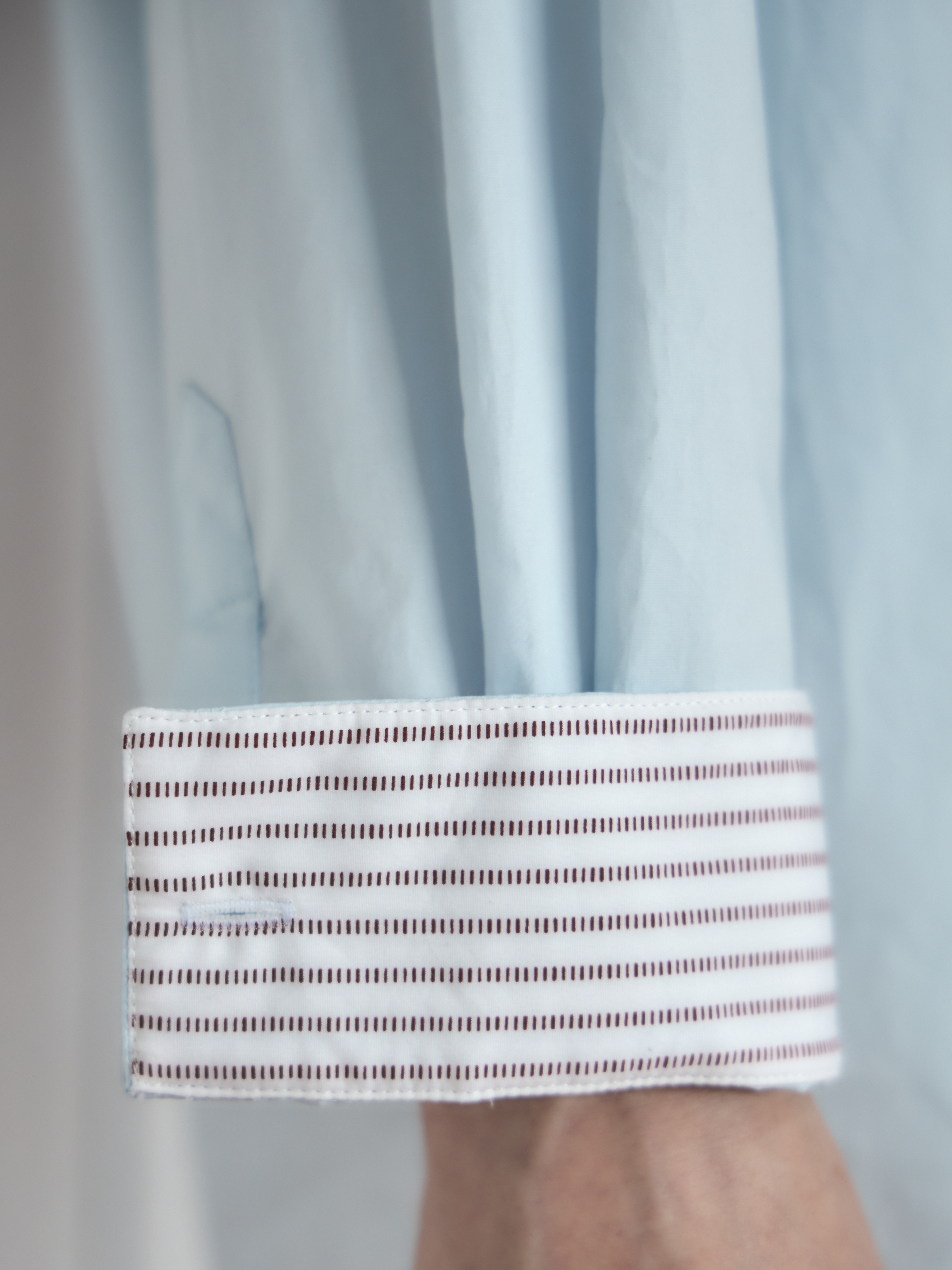 В этом сезоне рубашка Selin возвращается в новом небесно-голубом оттенке, напоминающем чистоту утреннего неба. Сшитая из мягкого хлопка, она нежно ощущается на теле. Особый характер этой модели придают лаконичные полосатые манжеты и деликатная вышивка «Azi» на груди — едва заметные детали, подчеркивающие аутентичность изделия.